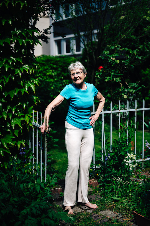 Lisette Jaletzky im Garten des Mehrfamilienhauses, um den sie sich kümmert. Foto: Costa Belibasakis
