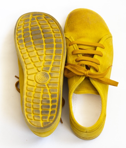 Die Sohle dieser Barfußschuhe ist so dünn, man kann sogar der Fußabdruck erkennen. Foto: Thomas Banneyer