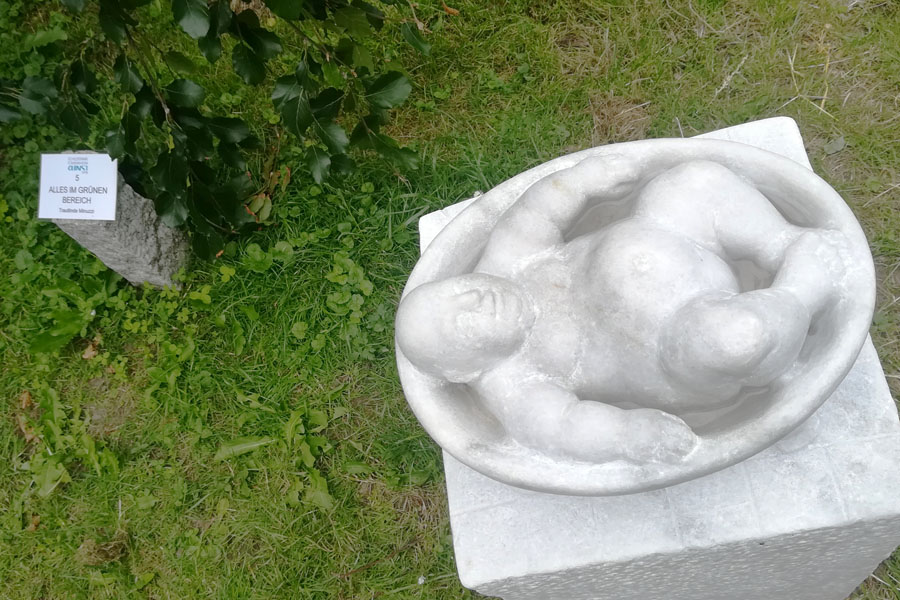 „Alles im grünen Bereich“ von Trautlinde Minuzzi ist eines der neuen Werke. Zum pfingstlichen Debüt badete der sympathische kleine Kerl in frischem Regenwasser. Foto: Antje Schlenker-Kortum