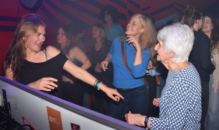 Das „Drei-Generationen-Trio“ (von rechts nach link) Erika Lathegan (82) mit Tochter Erika (57) und Enkelin Liz (24) tanzt im Tsunami Club begeistert zur Musik der Forever Fresh-DJs. Foto: © Marie Breer