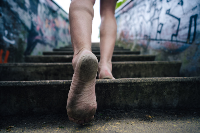 Hombach, studierter Mineraloge, ehemaliger Unternehmensberater und seit mehr als zehn Jahren Hypnose-Coach, ist überzeugter Barfußgeher. Beim Flanieren, beim Joggen, aber oft auch beim Einkauf in seinem Veedel verzichtet der drahtige Mann mit dem rot-grauen Vollbart auf schützende Sohlen. Seit gut zehn Jahren praktiziert er das. „Ich habe seitdem das Gefühl, ganz anders mit der Erde unter mir verbunden zu sein“, erklärt er. Gehen ohne Schuhe – das ist eigentlich die natürlichste Sache der Welt.