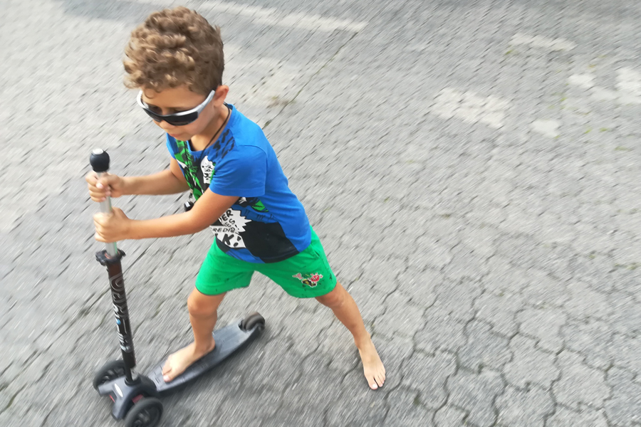Wie man Fahrradfahren lernen muss, muss aus das Rollerfahren erlernt werden. Und das ist gar nicht so einfach. Balance halten und wie bitte zeigt man an, dass man abbiegen will, wenn beide Hände am Lenker bleiben müssen? Und für die kleinen Reifen werden Schlaglöcher und nicht abgesenkte Bordsteine zu Sturzrisiken.