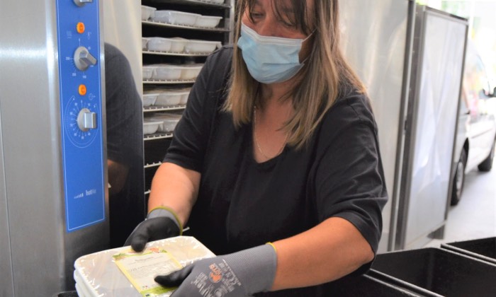 Das „Salz in der Suppe“ ist der persönliche Kontakt zu demjenigen, der liefert. Bevor Elisabeth Vogs Paprika-Gemüsepfanne auf ihrem Küchentisch landet, kam sie tiefgekühlt von der Herstellergroßküche nach Köln, wurde beim DRK-Zentrum in Braunsfeld im Spezialofen erhitzt, in eine Warmhaltebox gepackt und von dort direkt in ihre Wohnung gebracht.