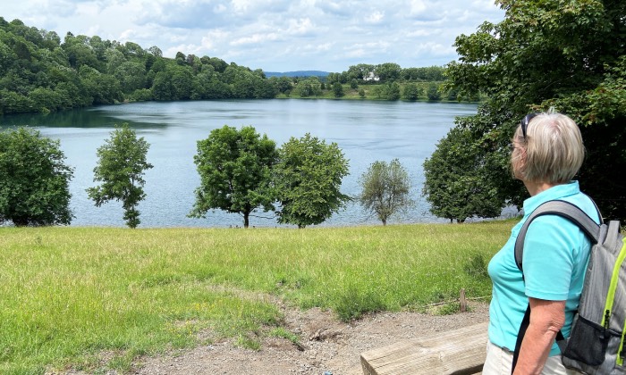 Warum nicht mal einen See im Vulkan erwandern? Foto: Weinfelder Maar, Susanne Neumann.