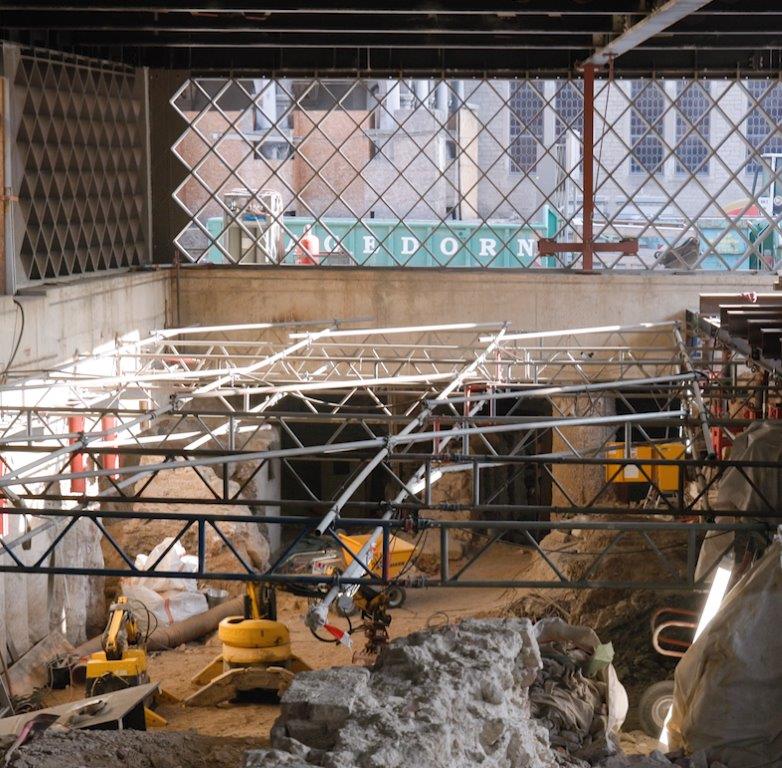 Der Bau nimmt Formen an – über der Erde, wo das große Stahlskelett die Umrisse des Museums erahnen lässt, und vor allem auch im noch weitaus größeren unterirdischen Teil. Es sieht freilich noch überall nach Arbeit aus. Der über 600 Meter lange, teils schon betonierte, teils noch unbefestigte Besucherrundgang führt durch ein Labyrinth aus alten Mauern. Er schlängelt sich durch die Kellergewölbe der Häuser des ehemaligen Juden- und des Goldschmiedeviertels. Vorbei am Judenspital, am Armenhaus, an einer der ältesten Synagogen diesseits der Alpen führt er weiter zum Kultbad Mikwe und durch den römischen Statthalterpalast, das Praetorium, das als Teil des Limes zum Unesco-Weltkulturerbe gehört.